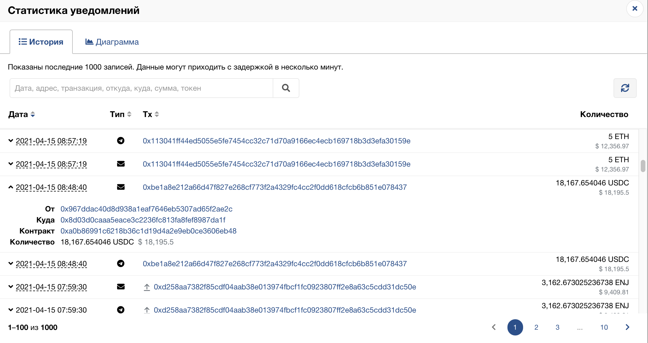 С помощью Ethplorer отслеживать ваши доходы становится еще проще, особенно если вы комбинируете ее с другими удобными функциями. Вы получите сообщение в Telegram или уведомление по электронной почте (смотря что вы выберете) всякий раз, когда придет платеж. Нет необходимости бесконечно обновлять страницу, когда сеть перегружена.